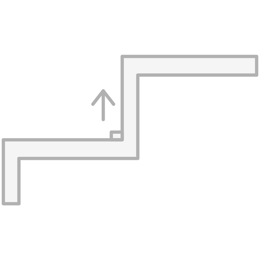 betyr at det er en rett trapp som utgjør hele trappeløpet. Rett trapp er kun mulig dersom det er nok plass til å binde etasjene sammen gjennom en rett linje.