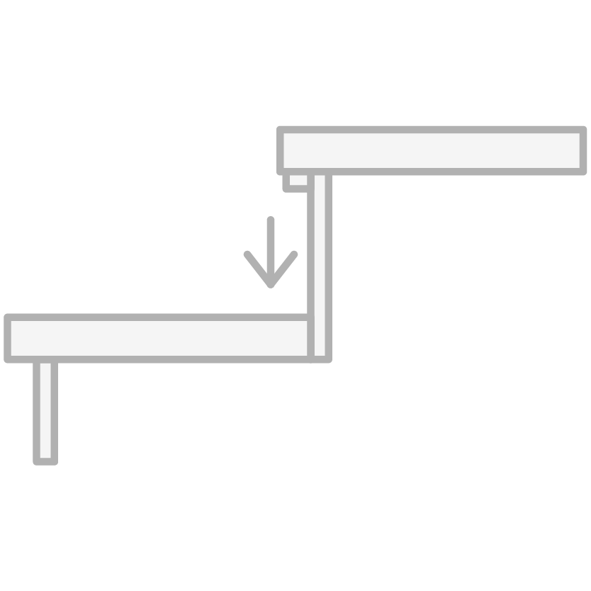 Denne typen trinn har en L-formet barnesikringslist som normalt er mellom 40-80mm i høyde og 39mm tykk (lik som inntrinn). Disse trinnene brukes ved åpen trappeløsning, for å ivareta regulering i forhold til sikkerhet. Dette er også et mer eksklusivt alternativ, da trinnene ser ut som massive 80mm trinn i front.